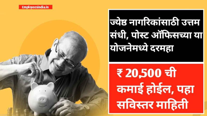 Senior citizens post office scheme :- जर आपण 60 वर्षे किंवा त्याहून अधिक वयाचे असाल आणि सेवानिवृत्तीनंतर दरमहा पक्की कमाई करायची असेल तर पोस्ट ऑफिसची ज्येष्ठ नागरिक बचत योजना (एससीएसएस) आपल्यासाठी एक उत्तम पर्याय आहे. या योजनेच्या माध्यमातून, आपल्याला दरमहा सुमारे 20,500 रुपये. हमी मिळू शकते आणि ते देखील कोणत्याही जोखमीशिवाय मिळू शकते कारण ही पूर्णपणे सरकारी योजना आहे.
