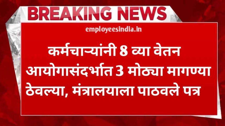 8th pay new update :- कर्मचार्यांनी 8 व्या वेतन आयोगासंदर्भात सरकारसमोर 3 मोठ्या मागण्या ठेवल्या आहेत. या मागण्या इतक्या महत्वाच्या आहेत की त्यांच्याशिवाय 1 कोटी पेक्षा जास्त केंद्रीय कर्मचारी आणि पेन्शनधारकांच्या पगाराच्या पेन्शनमध्ये सुधारणा करणे अशक्य आहे. यासंबंधी, कर्मचारी संघटनेने अर्थमंत्री आणि कर्मचारी व प्रशिक्षण विभागाचे सचिव (डीओपीटी) यांना या मागण्यांकडे लक्ष देण्याचे व त्वरित अंमलात आणण्याचे आवाहन केले आहे.