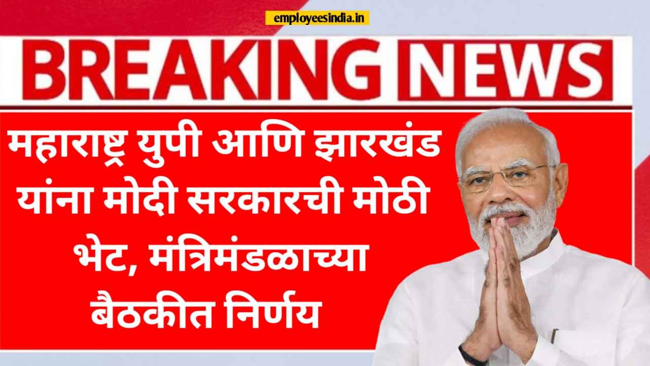 महाराष्ट्र युपी आणि झारखंड यांना मोदी सरकारची मोठी भेट, मंत्रिमंडळाच्या बैठकीत घेतले हे मोठे निर्णय.Union Cabinet Meeting