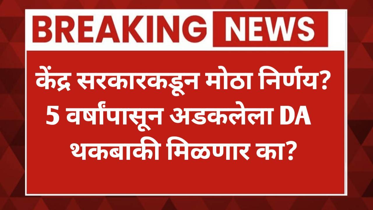 केंद्र सरकारकडून मोठा निर्णय? 5 वर्षांपासून अडकलेला DA थकबाकी मिळणार का? Panding Da update