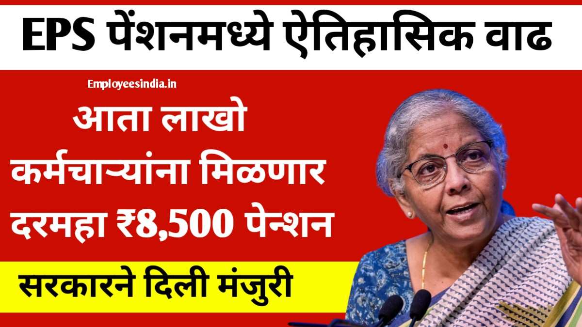 पूर्वी EPS अंतर्गत पेन्शनची रक्कम ₹1,000 इतकीच होती. मात्र आता सरकारने त्यात तब्बल 750% ची वाढ करत ही रक्कम ₹8,500 पर्यंत नेली आहे.