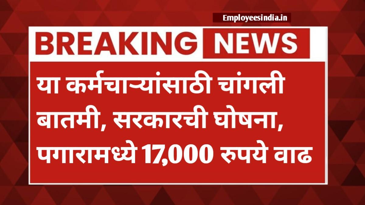 सरकारची ही पायरी कर्मचार्यांना आर्थिकदृष्ट्या बळकट करण्यात मदत करेल, विशेषत: अशा वेळी जेव्हा महागाई वाढत आहे. या घोषणेमध्ये कर्मचार्यांमध्ये उत्साह आणि समाधानाचे वातावरण आहे. कोणत्या केंद्रीय कर्मचार्यांचा 17000 ने वाढेल, लेखात संपूर्ण माहिती दिली जात आहे.Employees salary increase today