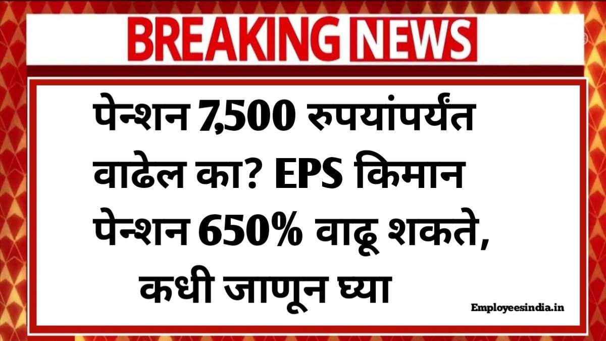 Eps pension increase july :– नमस्कार मित्रांनो कर्मचारी पेन्शन योजना (EPS-95) अंतर्गत पेन्शनधारकांसाठी एक मोठी बातमी समोर येत आहे. बातमीनुसार, किमान पेन्शन 1,000 रुपयांवरून 7,500 रुपये करण्याची चर्चा सुरू आहे, जी 650% ची जबरदस्त वाढ आहे. आत्तापर्यंत EPFO किंवा सरकारकडून ही वाढ होईल असे सांगण्यात आले नाही.
