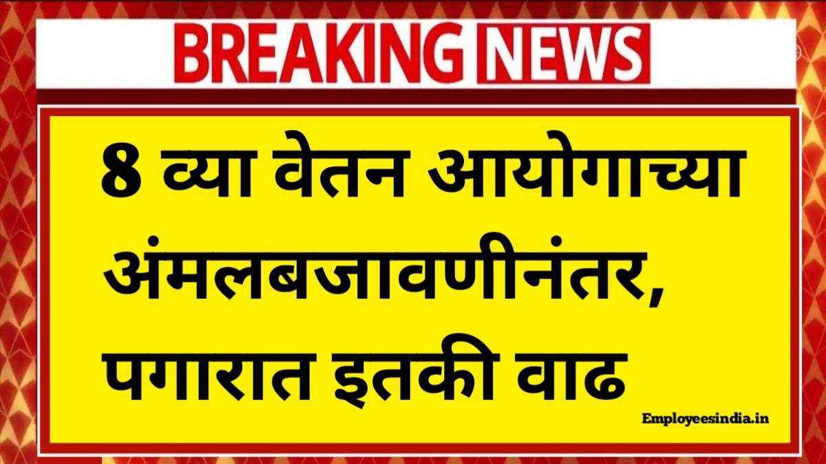 यानंतर, देशभरातील केंद्रीय कर्मचार्यांच्या पगाराच्या रचनेत प्रचंड बदल होणार आहे. तथापि, वेतन आयोगाच्या सदस्यांच्या, अध्यक्ष आणि नवीन वेतन आयोगाच्या अटी व संदर्भ अद्याप जाहीर झाले नाहीत. परंतु असे मानले जाते की या वेळी केंद्रीय कर्मचार्यांचा पगार प्रचंड प्रमाणात वाढणार आहे. 8th pay today new update