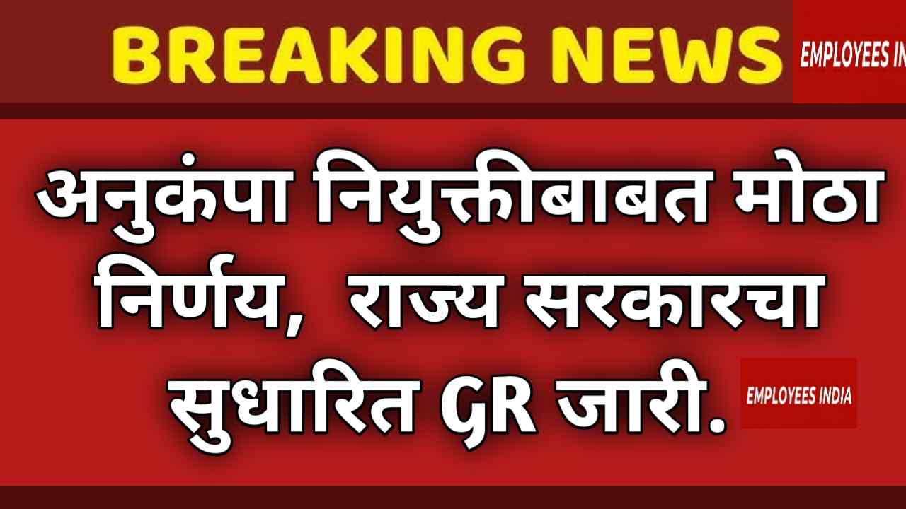 अनुकंपा नियुक्तीबाबत मोठा निर्णय,  राज्य सरकारचा सुधारित GR जारी. Compassionate Appointment GR