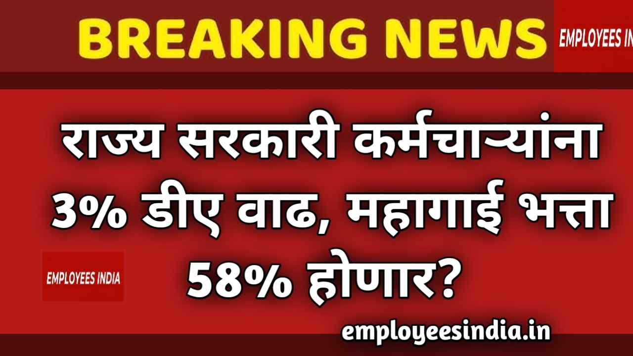 राज्य सरकारी कर्मचाऱ्यांना 3% डीए वाढ, महागाई भत्ता 58% होणार? DA Hike News