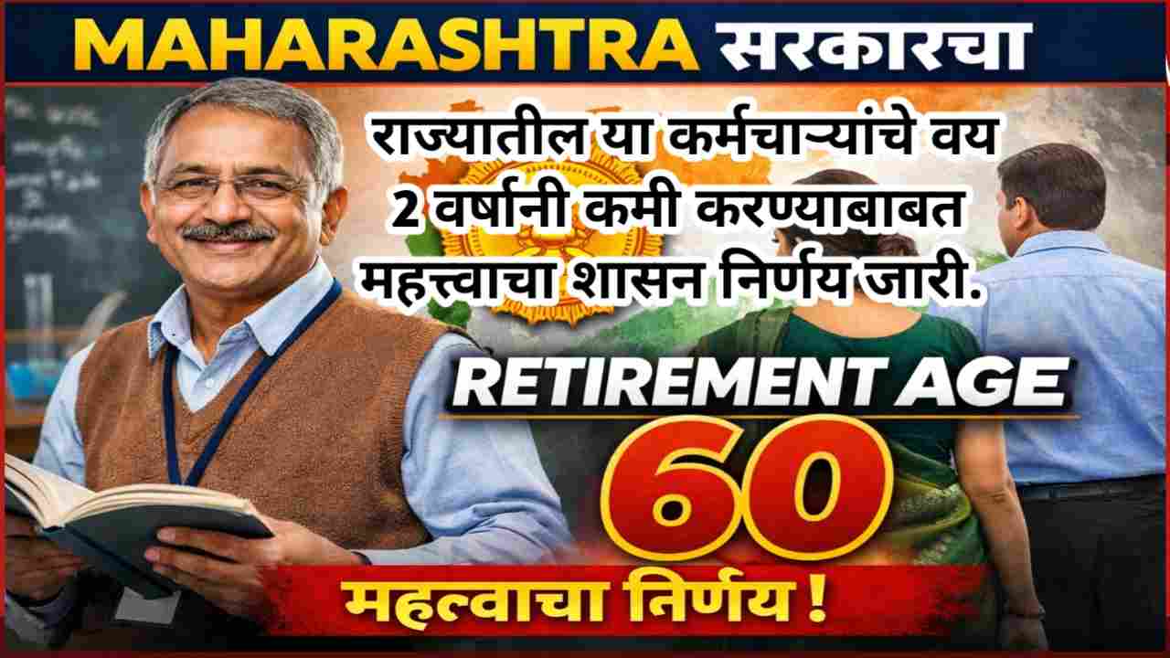 Retirement Age Reduction News : राज्यातील काही कर्मचाऱ्यांचे सेवानिवृत्तीचे वय दोन वर्षांनी कमी करण्याबाबत राज्य शासनाने महत्त्वाचा शासन निर्णय (GR) 17 जानेवारी 2026 रोजी निर्गमित केला आहे. या शासन निर्णयामुळे राज्यातील कृषी विद्यापीठांमधील अध्यापकीय संवर्गातील कर्मचाऱ्यांबाबत स्पष्टता आली आहे.