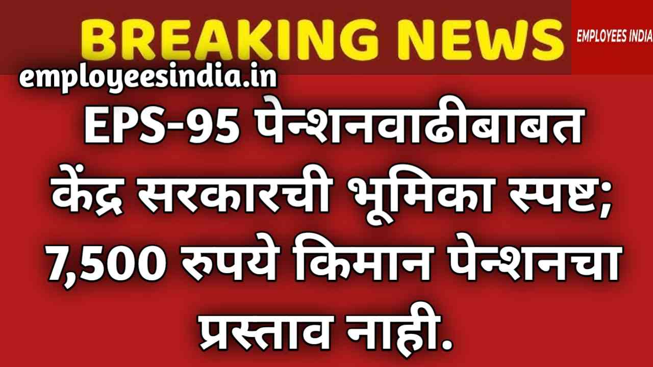 EPS-95 Pension News  : ईपीएफओ (EPFO) अंतर्गत येणाऱ्या EPS-95 पेन्शनधारकांसाठी महत्त्वाची बातमी समोर आली आहे. सध्या चर्चेत असलेल्या किमान पेन्शन वाढीबाबत केंद्र सरकारने आपली भूमिका स्पष्ट करत, सध्या 1,000 रुपये असलेली किमान मासिक पेन्शन थेट 7,500 रुपये करण्याचा कोणताही प्रस्ताव सरकारकडे नसल्याचे स्पष्ट केले आहे. ही माहिती श्रम व रोजगार मंत्रालयाने राज्यसभेत दिली असून, त्यामुळे लाखो पेन्शनधारकांच्या अपेक्षांना तात्पुरता धक्का बसला आहे.