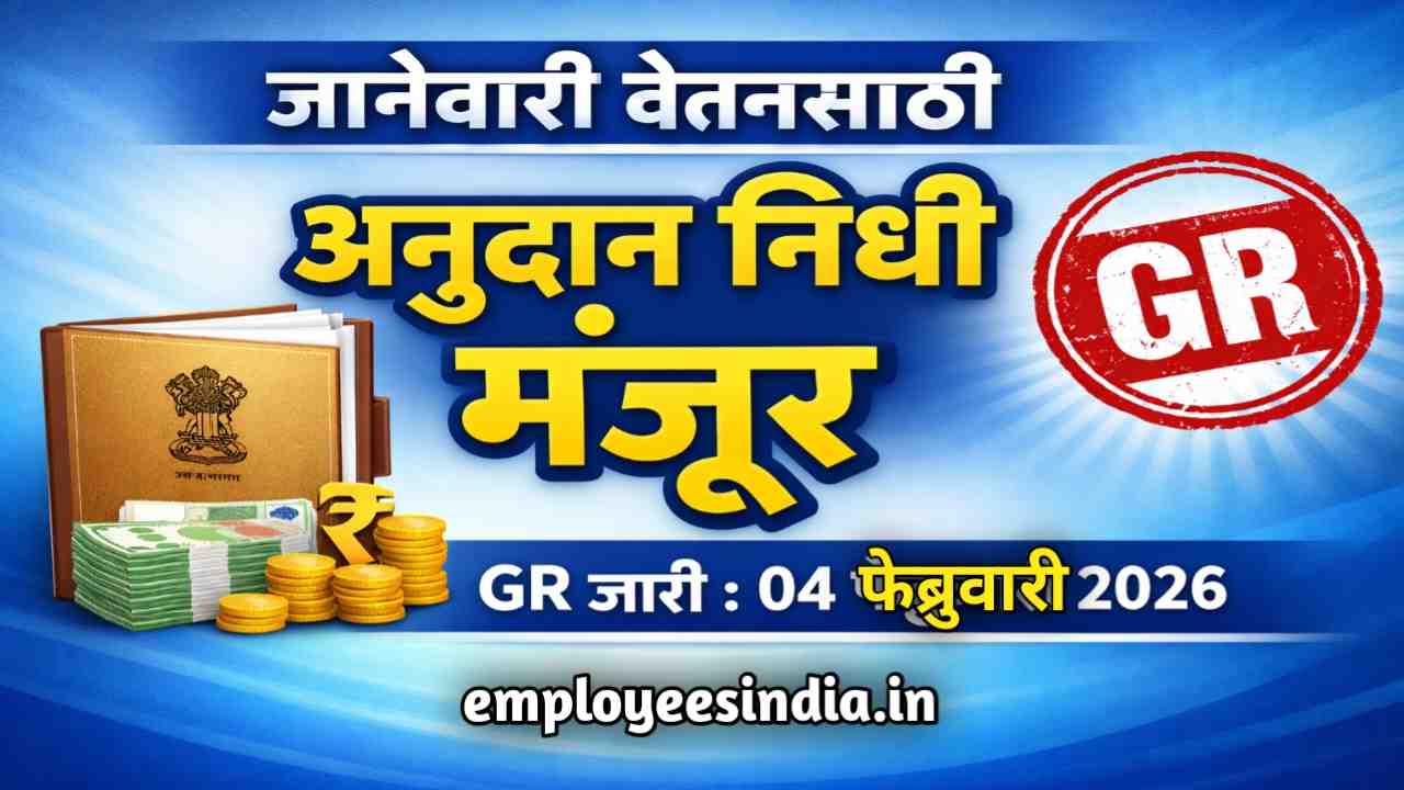 मुंबई : Maharashtra Salary Grant 2026 :   माहे जानेवारी 2026 चे वेतन फेब्रुवारी 2026 मध्ये अदा करण्यासाठी अनुदान निधी वितरणाबाबत शालेय शिक्षण व क्रीडा विभागामार्फत दि. 04 फेब्रुवारी 2026 रोजी महत्त्वपूर्ण शासन निर्णय (GR) निर्गमित करण्यात आला आहे.