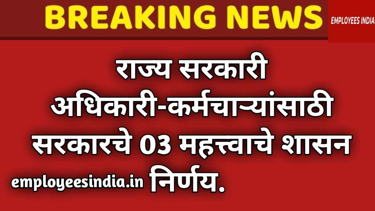 राज्य सरकारी अधिकारी-कर्मचाऱ्यांसाठी आजचे 03 महत्त्वाचे शासन निर्णय. State Employees Latest News