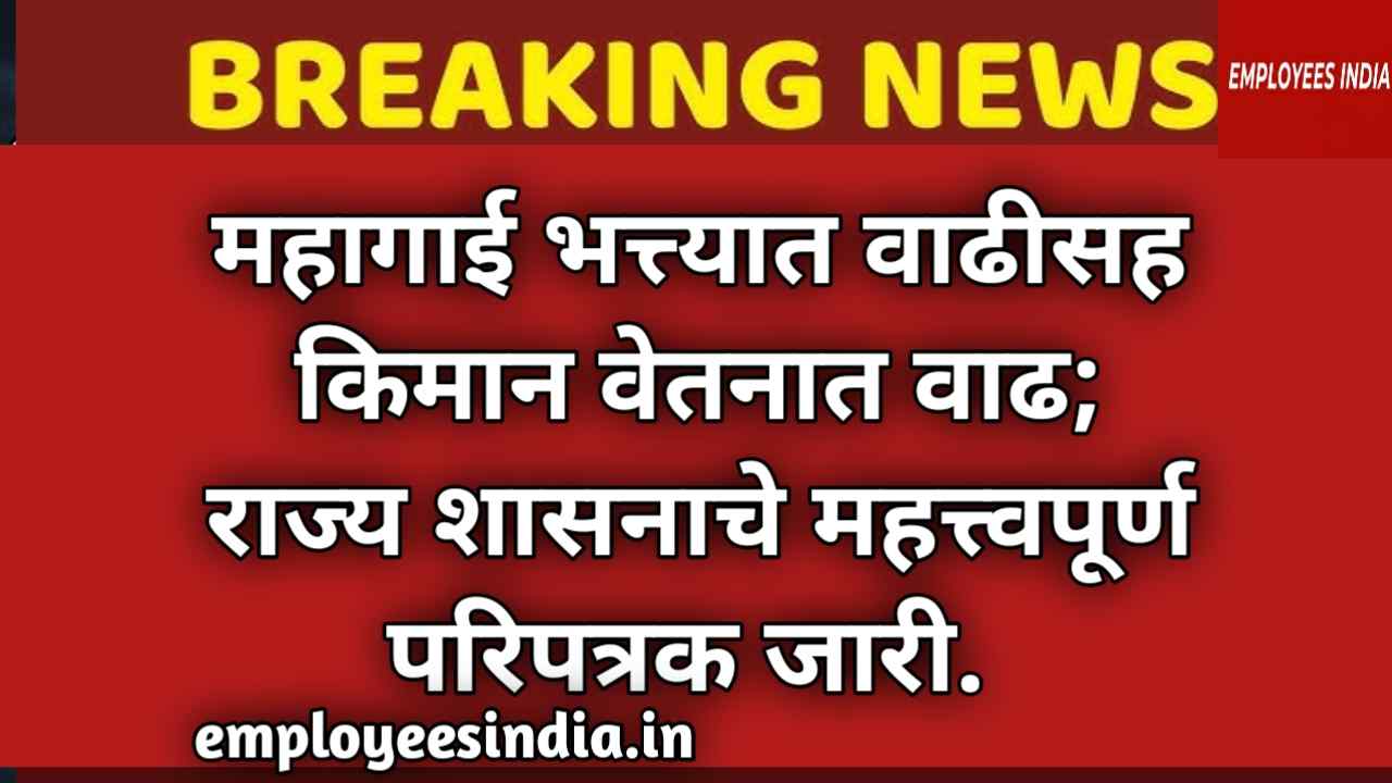 महागाई भत्त्यात वाढीसह किमान वेतनात वाढ; राज्य शासनाचे महत्त्वपूर्ण परिपत्रक जारी. DA Allowance News.
