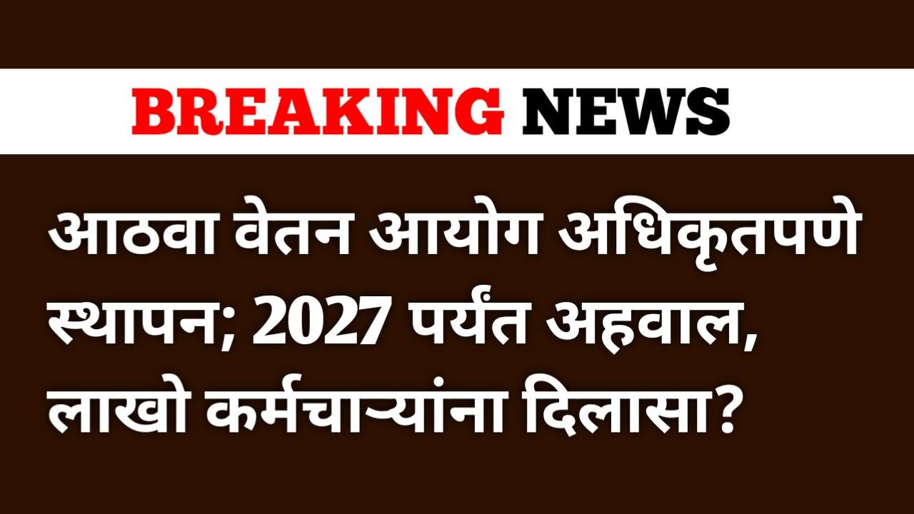 आठव्या केंद्रीय वेतन आयोगाची अधिकृत स्थापना ही केंद्रीय कर्मचारी आणि पेन्शनधारकांसाठी मोठी सकारात्मक घडामोड मानली जात आहे. 2027 पर्यंत अहवाल अपेक्षित असल्याने पुढील दोन वर्षे अत्यंत महत्त्वाची ठरणार आहेत.