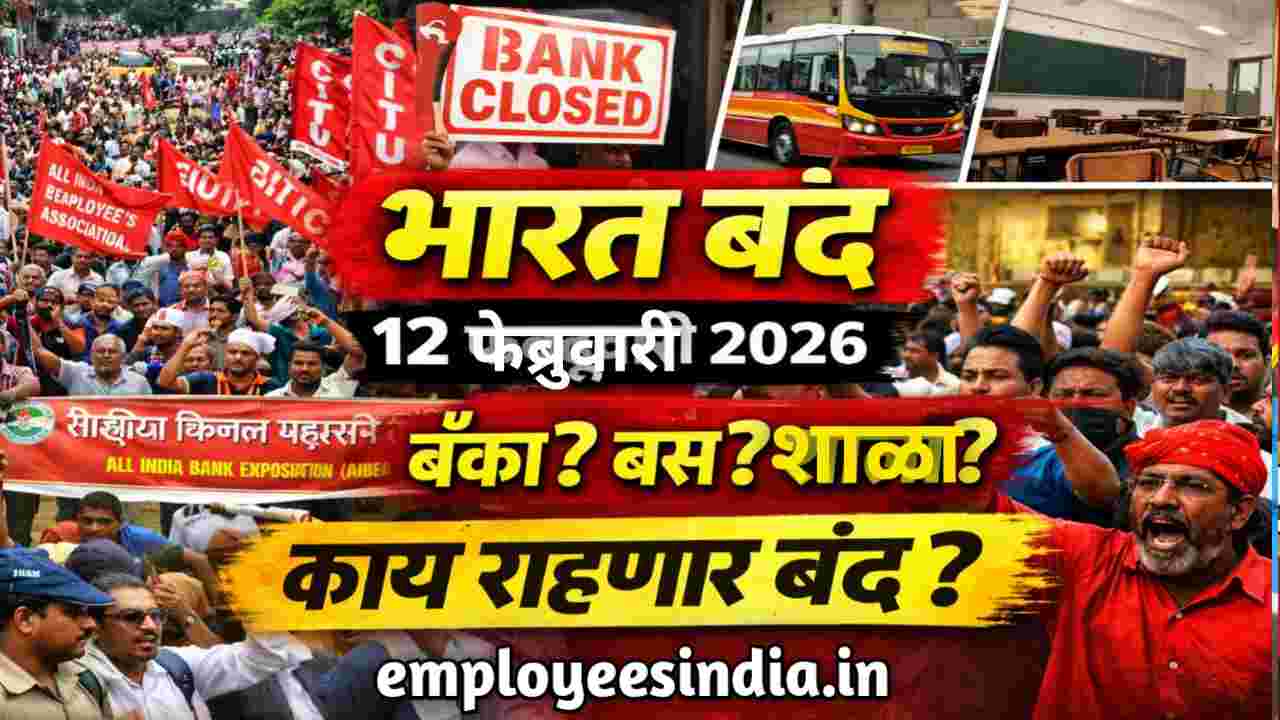 Bharat Band Update 2026 : आज , १२ फेब्रुवारी २०२६ रोजी देशव्यापी संप होणार असून देशभरातील कामगार संघटना, बँक कर्मचारी आणि शेतकरी संघटनांनी या भारत बंदची हाक दिली आहे. कामगार संघटना नेत्यांच्या दाव्यानुसार, या आंदोलनात ३० कोटींहून अधिक कामगार सहभागी होऊ शकतात.