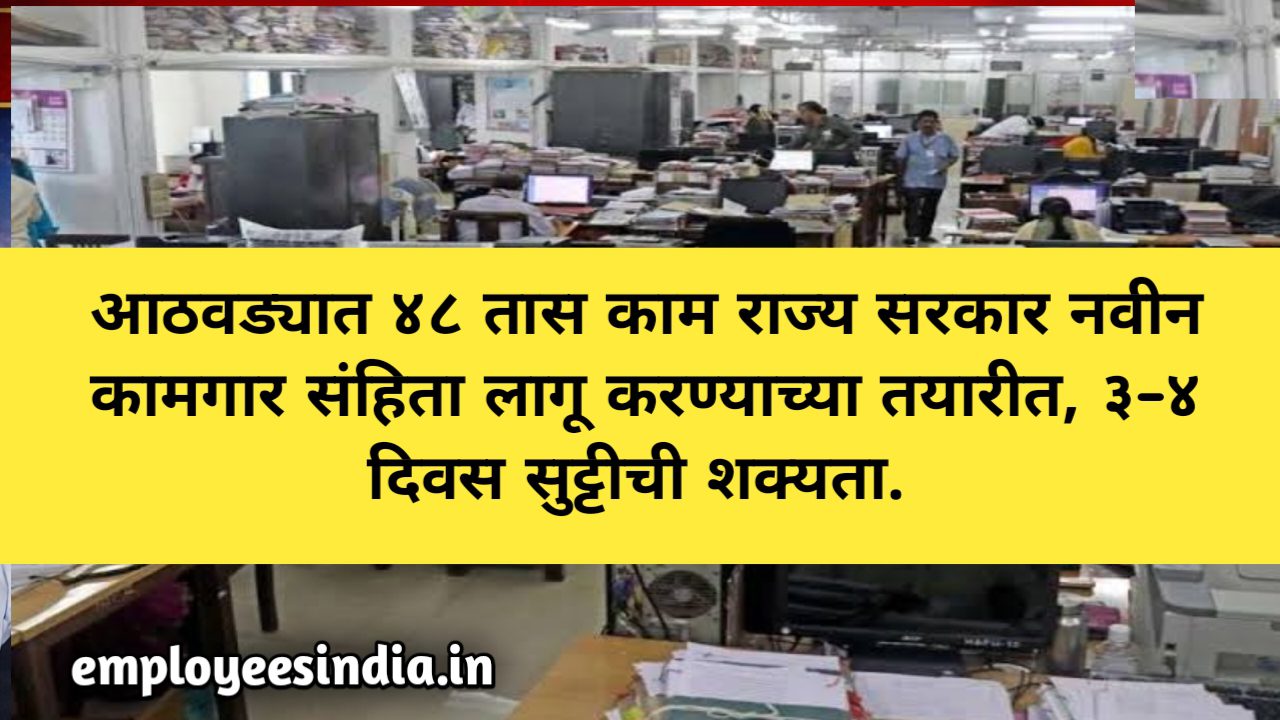 आठवड्यात ४८ तास काम राज्य सरकार नवीन कामगार संहिता लागू करण्याच्या तयारीत, ३–४ दिवस सुट्टीची शक्यता. Maharashtra New Labour Code