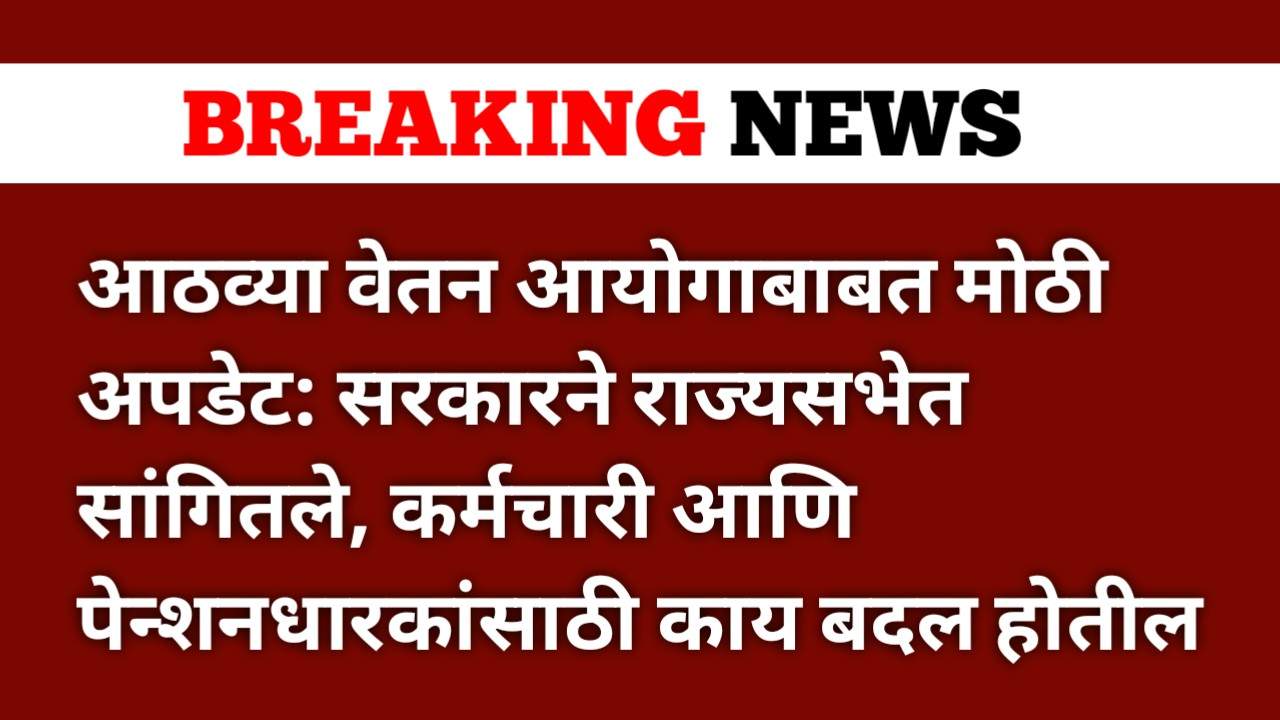 सरकारने राज्यसभेत सांगितले की, आठवा वेतन आयोग आता औपचारिकरित्या स्थापन झाला आहे. तो नोव्हेंबर २०२५ मध्ये स्थापन करण्यात आला. आयोगाला त्याचा अहवाल तयार करण्यासाठी १८ महिने देण्यात आले आहेत. याचा अर्थ असा की ते अर्थव्यवस्थेचा सखोल संशोधन आणि आढावा घेतल्यानंतर शिफारसी करेल.