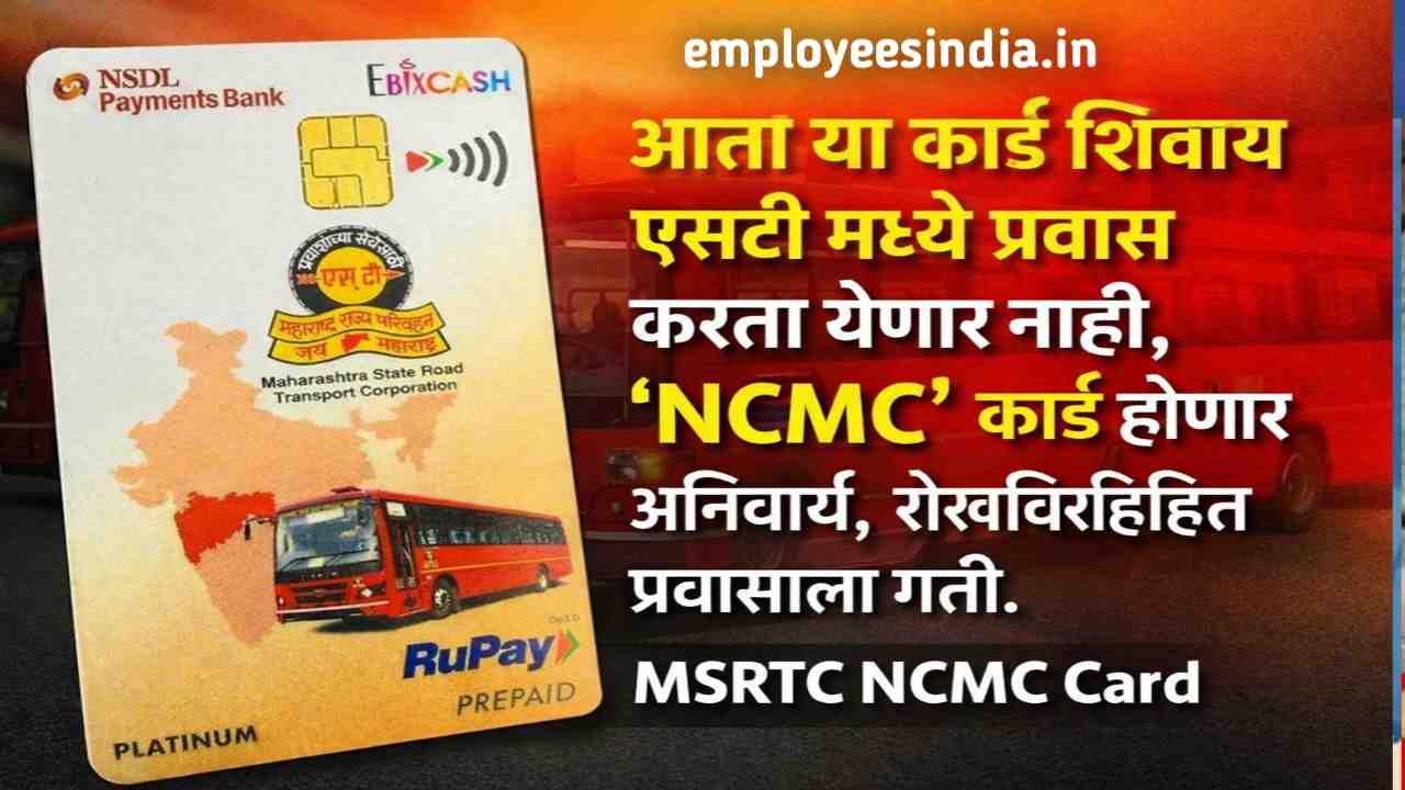 MSRTC NCMC Card (एसटी) प्रवासात मोठा डिजिटल बदल होणार आहे. प्रवाशांना अधिक पारदर्शक आणि सोयीस्कर सेवा देण्यासाठी ‘नॅशनल कॉमन मोबिलिटी कार्ड’ (NCMC) प्रणाली लागू करण्याचा निर्णय घेण्यात आला आहे.