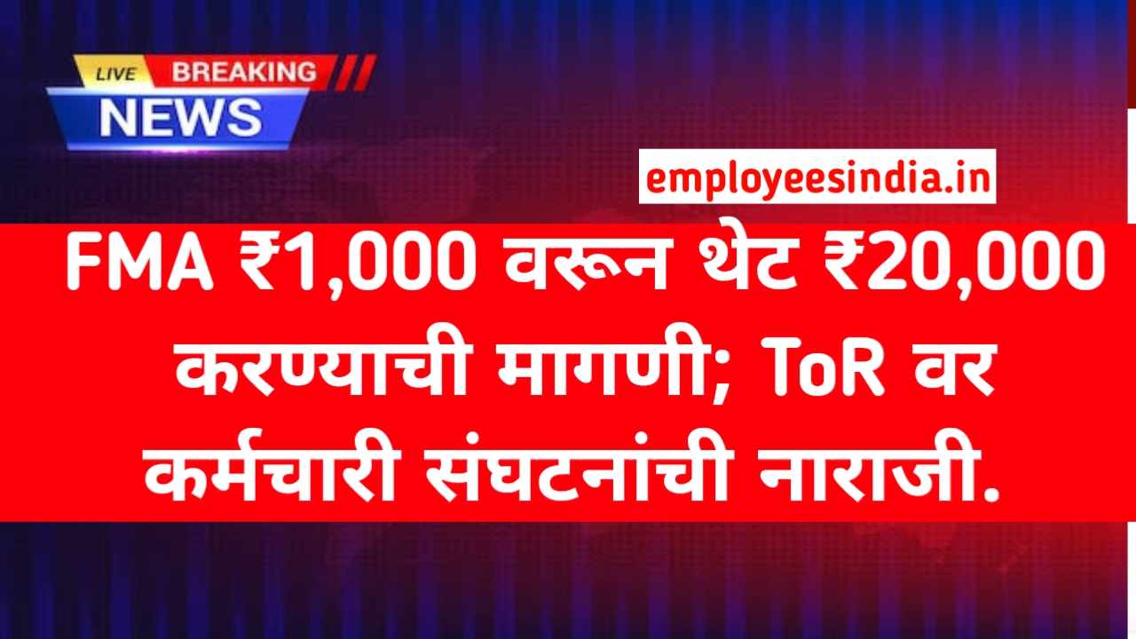 FMA ₹1,000 वरून थेट ₹20,000 करण्याची मागणी; ToR वर कर्मचारी संघटनांची नाराजी. : 8th Pay Commission News