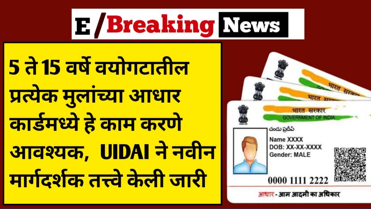खरं तर, मुलांचे आधार कार्ड दोनदा अपडेट करणे आवश्यक आहे. एकदा ५ वर्षे पूर्ण झाल्यावर आणि दुसऱ्यांदा १५ वर्षे पूर्ण झाल्यावर.Aadhar Card Update Online
