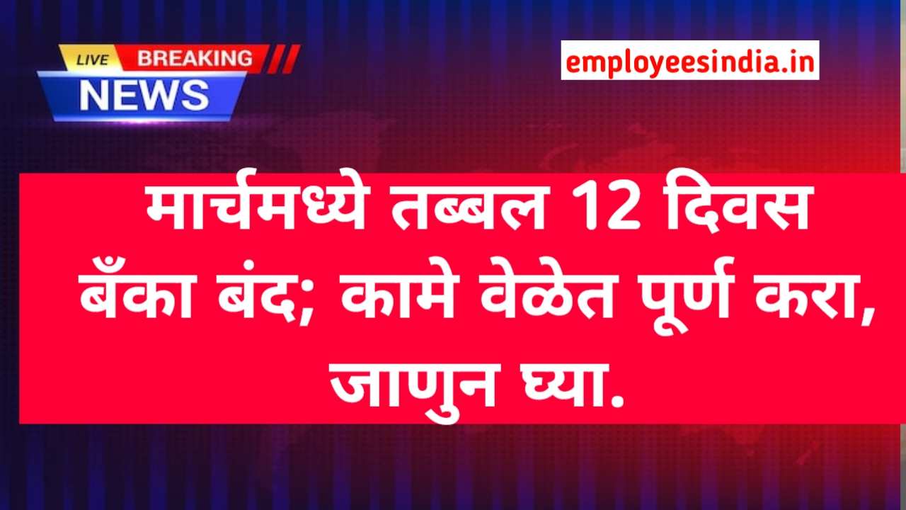 मार्चमध्ये तब्बल 12 दिवस बँका बंद; कामे वेळेत पूर्ण करा, जाणुन घ्या.Bank Holidays In March