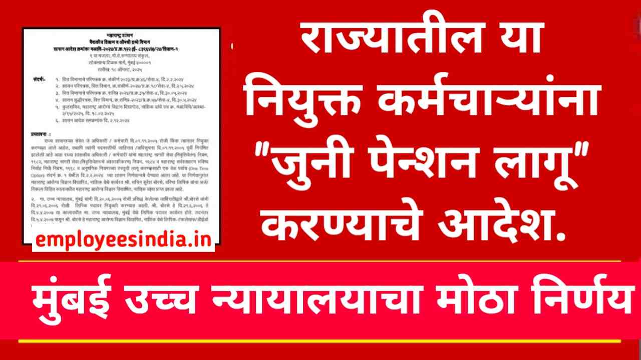 मुंबई उच्च न्यायालयाचा मोठा निर्णय : राज्यातील या नियुक्त कर्मचाऱ्यांना जुनी पेन्शन लागू करण्याचे आदेश. Old Pension Scheme Maharashtra