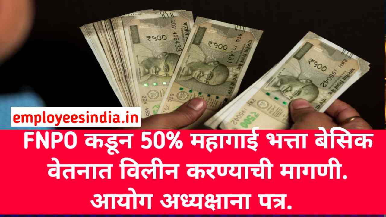FNPO कडून 50% महागाई भत्ता बेसिक वेतनात विलीन करण्याची मागणी. आयोग अध्यक्षाना पत्र.  8th pay Commission