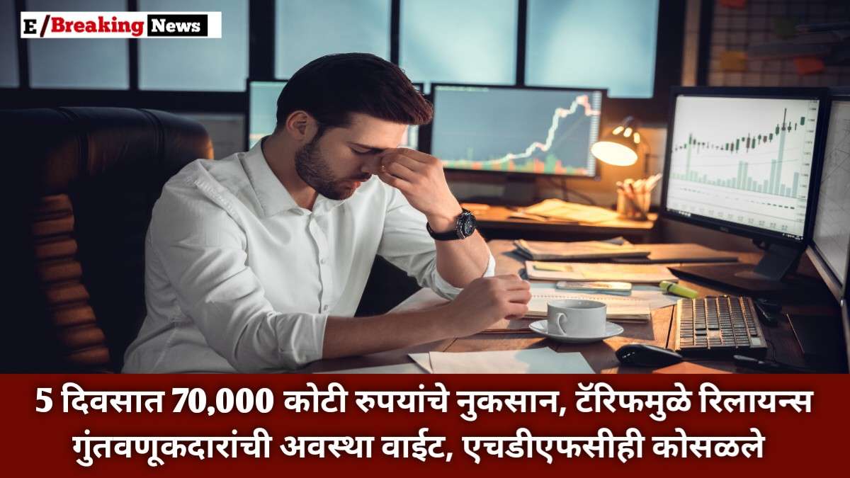 5 दिवसात 70,000 कोटी रुपयांचे नुकसान, टॅरिफमुळे रिलायन्स गुंतवणूकदारांची अवस्था वाईट, एचडीएफसीही कोसळले. Share market investors update
