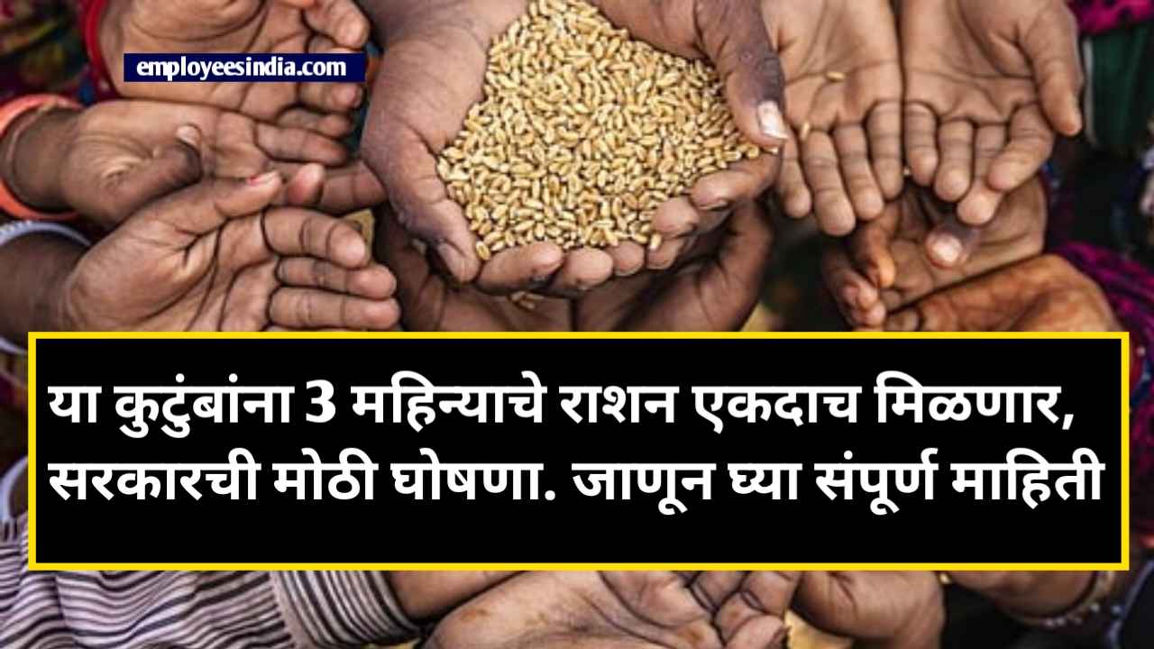 या कुटुंबांना 3 महिन्याचे राशन एकदाच मिळणार, सरकारची मोठी घोषणा. जाणून घ्या संपूर्ण माहिती. Ration card e kyc