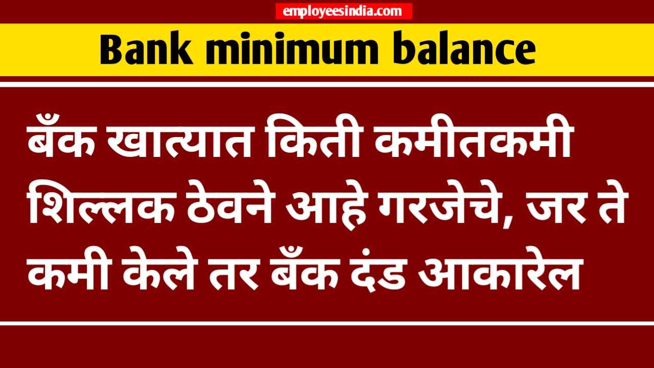 बँक खात्यात किती कमीतकमी शिल्लक ठेवने आहे गरजेचे, जर ते कमी केले तर बँक दंड आकारेल.Bank minimum balance