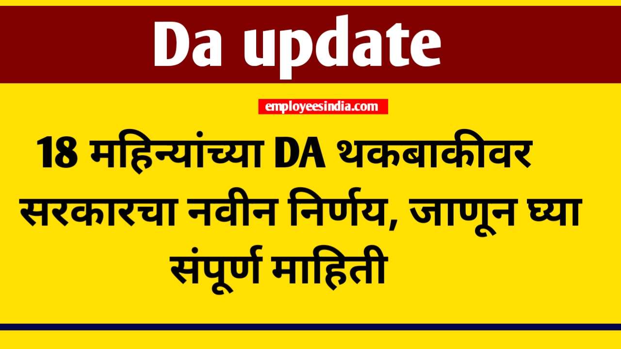 18 महिन्यांच्या DA थकबाकीवर सरकारचा नवीन निर्णय, जाणून घ्या संपूर्ण माहिती. Da update