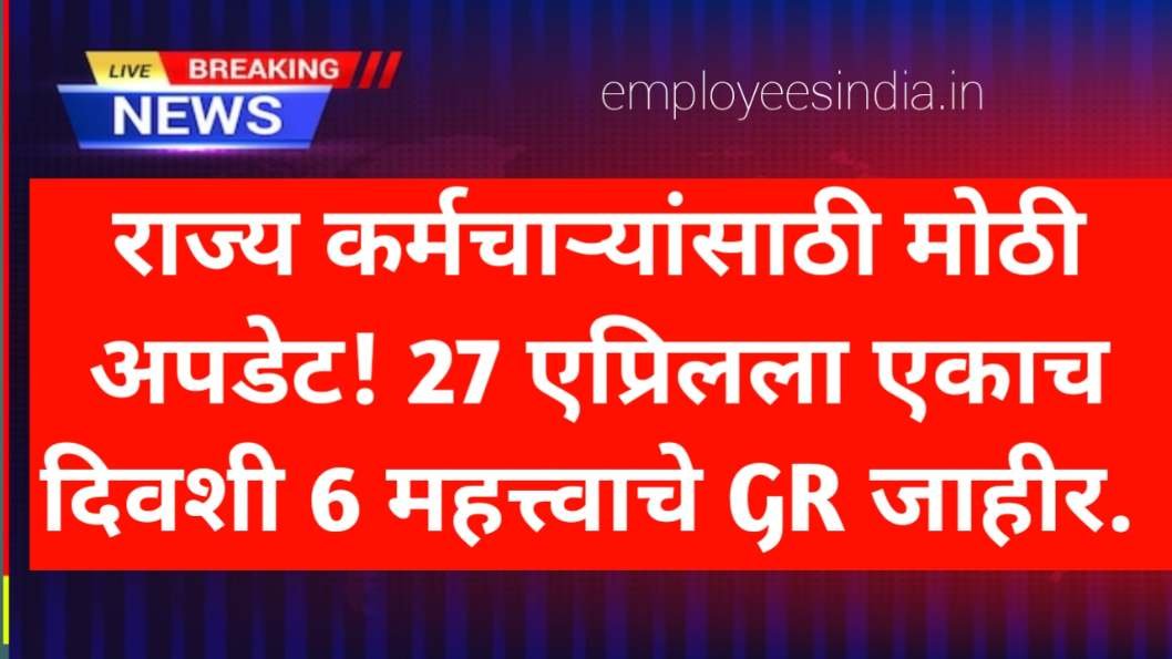 मुंबई : Government job pension and benefits : राज्यातील अधिकारी आणि कर्मचाऱ्यांसाठी दिलासा देणाऱ्या आणि प्रशासनाला गती देणाऱ्या घडामोडी घडल्या आहेत. 27 एप्रिल 2026 रोजी विविध विभागांकडून तब्बल 6 महत्त्वाचे शासन निर्णय (GR) जारी करण्यात आले. या निर्णयांमुळे पदोन्नती, नियुक्त्या, प्रशिक्षण आणि विविध विभागातील कामकाजावर थेट परिणाम होणार आहे.