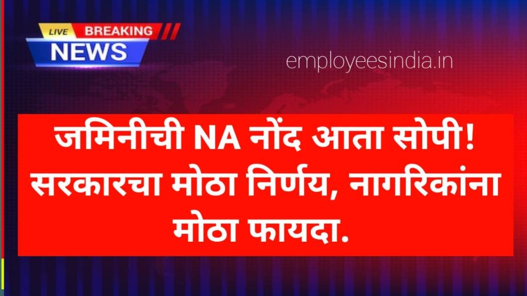 सरकारने NA टॅक्स संदर्भातही एक मोठा बदल केला आहे. पूर्वी जमिनीला NA केल्यानंतर दरवर्षी कर भरावा लागत होता. मात्र आता हा वार्षिक कर रद्द करून One Time NA Premium Payment प्रणाली लागू करण्यात येत आहे. म्हणजे नागरिकांना एकदाच शुल्क भरावे लागेल आणि त्यानंतर वार्षिक कराचा त्रास होणार नाही. यामुळे दीर्घकालीन आर्थिक बचत होणार आहे.