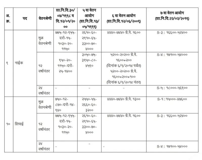💰 सुधारित वेतनश्रेणी (तक्ता)