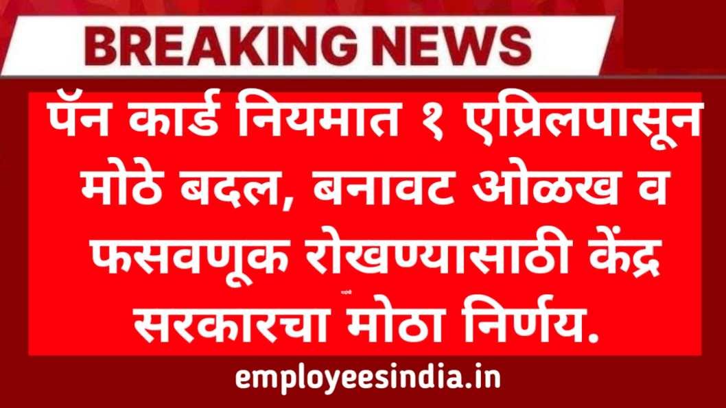पॅन कार्ड नियमात १ एप्रिलपासून मोठे बदल, बनावट ओळख व फसवणूक रोखण्यासाठी केंद्र सरकारचा मोठा निर्णय. Pan card new Update