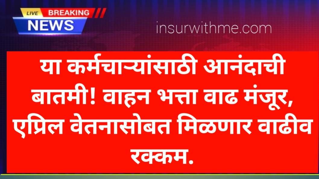 Travel Allowance Hike 2026 : राज्य सरकारने वाहन भत्ता वाढीस मंजुरी दिल्यामुळे संबंधित कर्मचाऱ्यांसाठी मोठा दिलासा मिळाला आहे. एप्रिल 2026 च्या वेतनासोबतच हा वाढीव भत्ता देण्यात येणार असल्याने कर्मचाऱ्यांच्या उत्पन्नात थेट वाढ होणार आहे. हा लाभ नेमका कोणाला मिळणार, याची सविस्तर माहिती पुढीलप्रमाणे आहे.